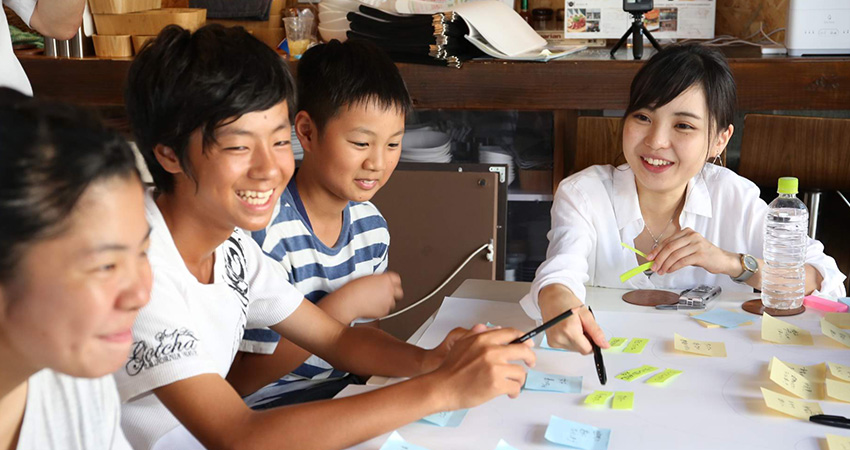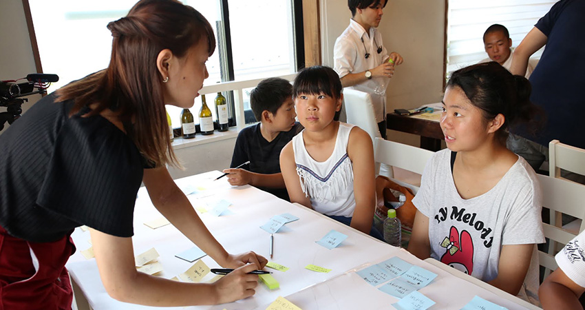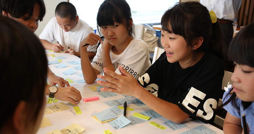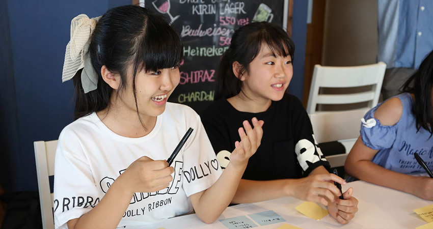 理想の海老名を自由に考えて、自分で書いたり、発言したり。誰かの意見を聞くと、自分の考えもさらに広がっていきます。