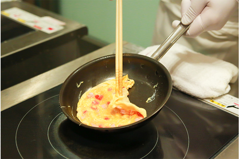 華麗なフライパン捌きであっという間に焼き上がるオムレツ