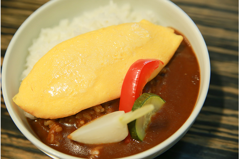 カレーの上にオムレツをそっと載せれば出来上がり!