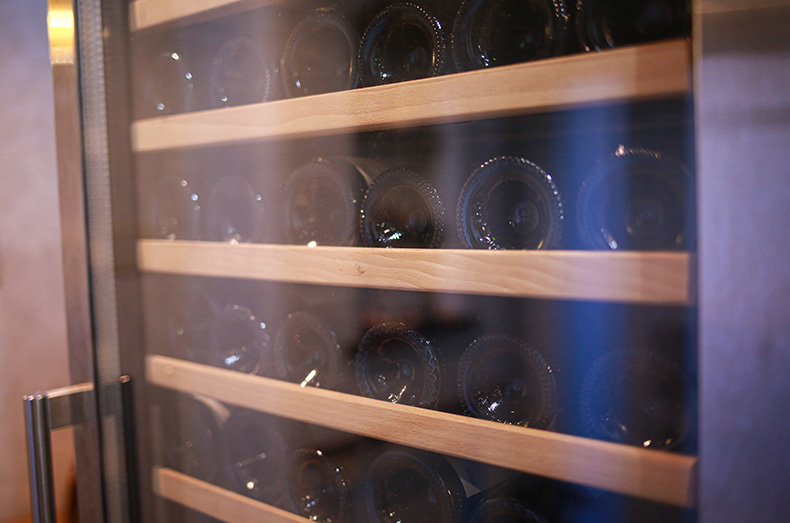 コースにはワインをおすすめしています。私がワイン好きで、このワインセラーもフランスから取り寄せたものです。