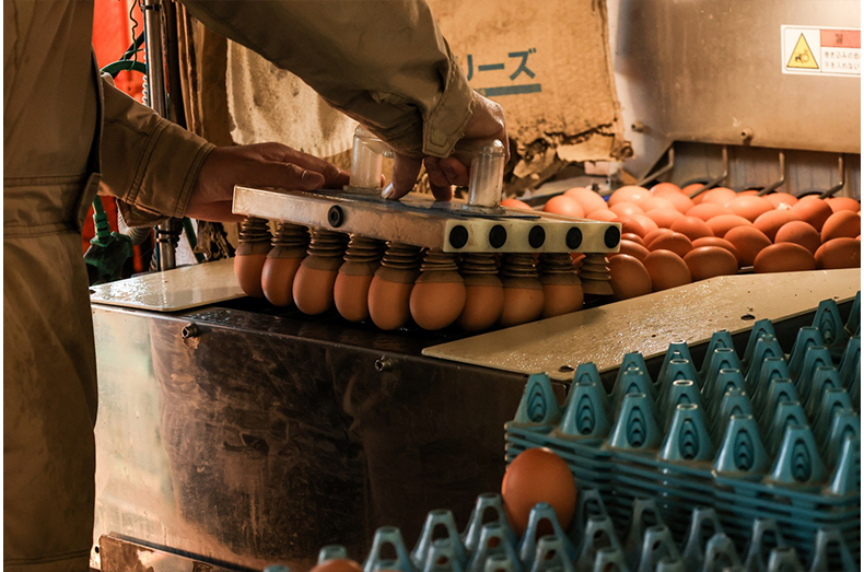 卵を吸い上げ、移動させる機械