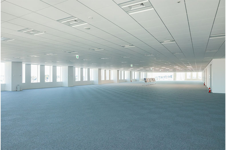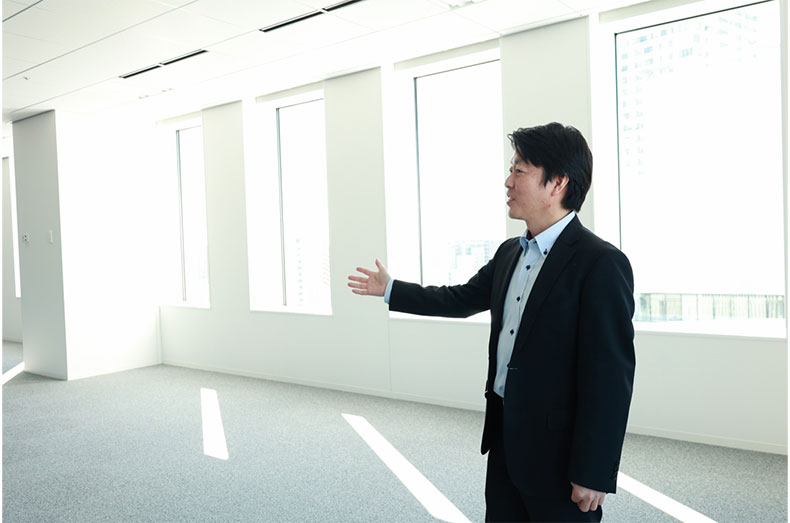 このうち、賃貸オフィスとして展開するのは8階から14階までの中高層階。天井高2.8m、最大奥行約17.6mの柱のない開放的な空間を、様々な企業様に活用していただきたいと考えております。
