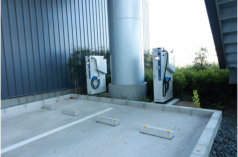 駐車場には電気自動車の充電スポットも完備