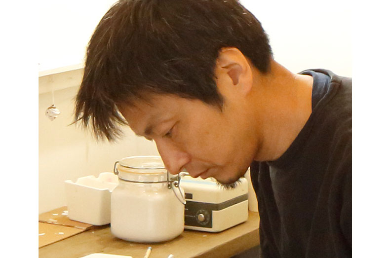 故郷である徳島の高等専門学校機械工学科を卒業した後、25歳から独学でガラスアートを始めました。40歳のとき、東京と徳島で初めて開催してから、16年間に渡って続けた個展や展示会が、現在の活動の根幹となっています。