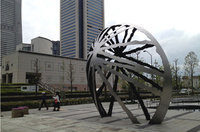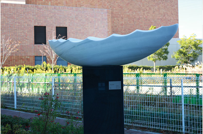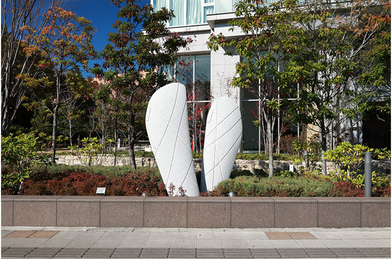 そこでインスパイアされたのが、リーフィアタワー海老名ブリスコートに設置されている、水をモチーフとした彫刻の数々でした。水の彫刻は、水を抽象化した形が創造されているもので、その作家たちが水をどのように抽象化し彫刻に落とし込んでいるかをリサーチし、その過程を想像して、今回の作品に応用しようと考えたのです。