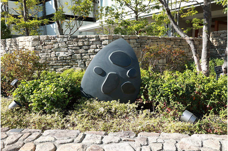今回の制作に携わる前に、リーフィアタワー海老名ブリスコート・アクロスコートに設置する作品を手掛けたのですが、その際には地域住民の方々と周辺を散策し、植物や地面など身の回りの自然から不思議な形を見つけるワークショップを行いました。そこで作られた版画をもとに、「トンボ」「松ぼっくり」という石の彫刻作品を制作して、身の回りの見落とされがちな小さな自然にフォーカスを当てたのです。