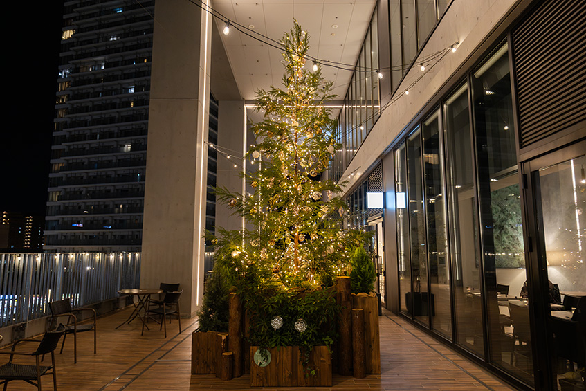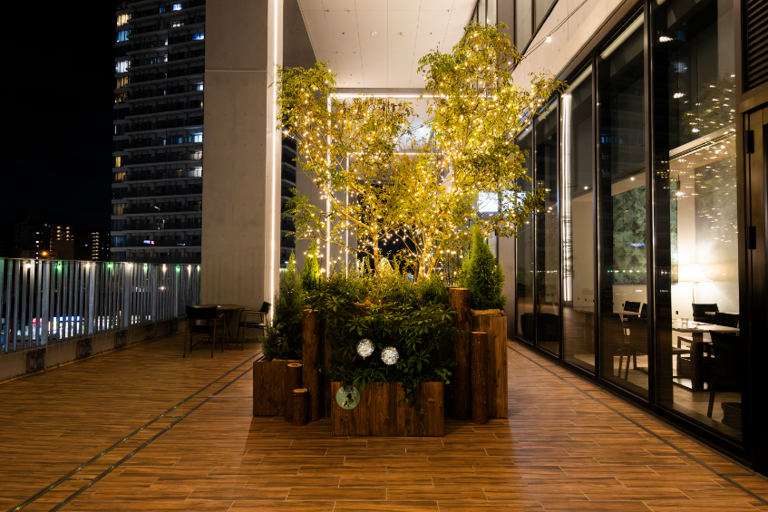 「2343 DEPARTMENT」の横には、たくさんの木々からなるボタニカルなイルミネーション。グリーンが作り出す癒しの空間には、穏やかな時間が流れています。