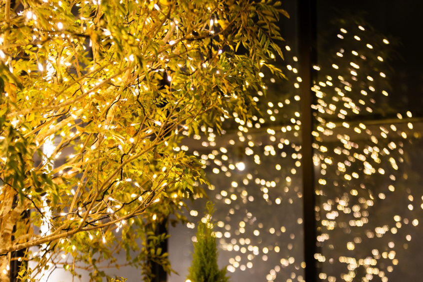 寒い冬だからこそきれいに見える星空と、あたたかみのあるボタニカルなイルミネーションのコラボレーションは、この時期だけのお楽しみです。