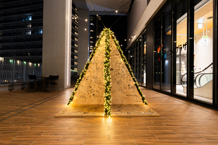 セントラルプロムナードの奥には、みんなの願いが込められたクリスマスツリーが置かれています。ペンも設置されているので、クリスマスの願い事を書き込んでみては……。