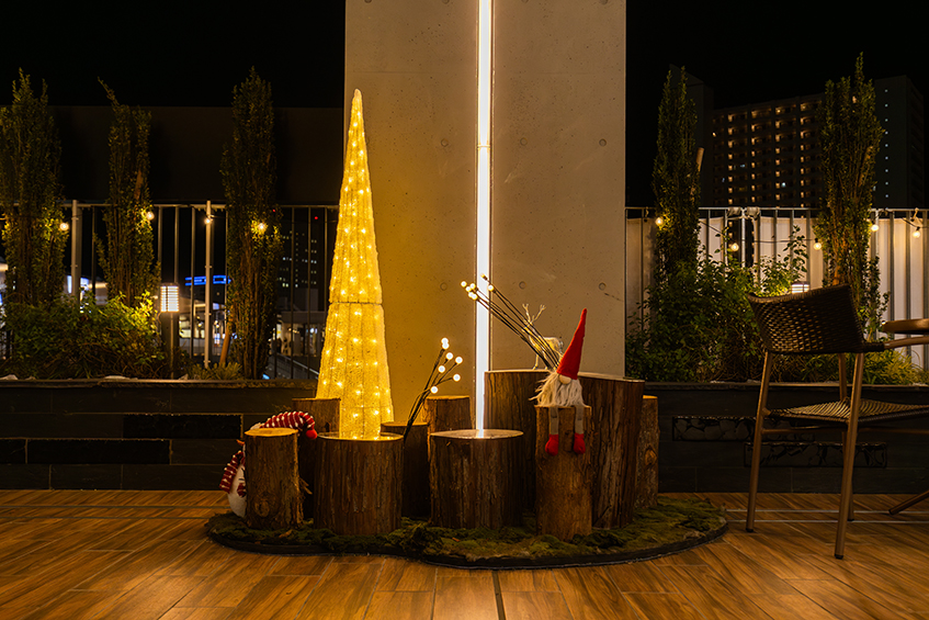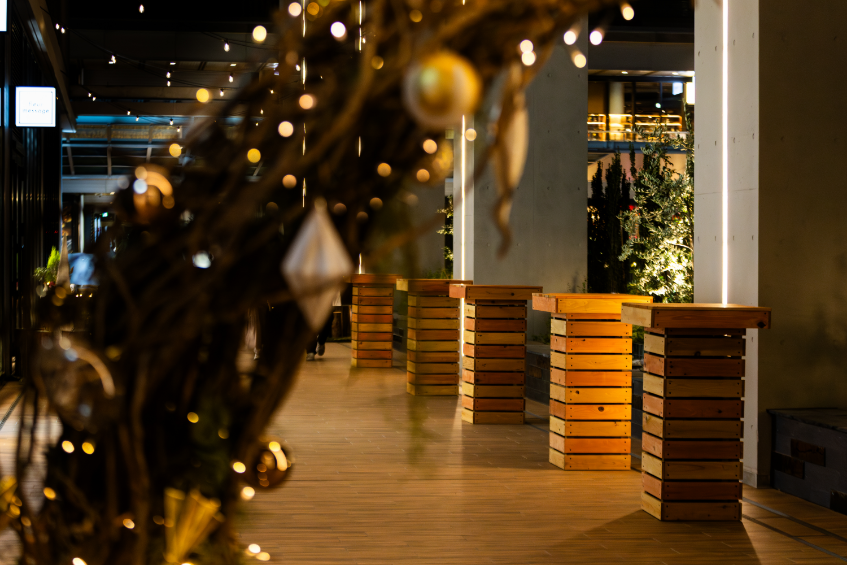 クリスマスの装いをしたセントラルプロムナード。いつもと違った雰囲気に惹きつけられ、しばしの散歩を楽しんだ人もいるのではないでしょうか。あたたかいドリンクを片手に、くつろぎのひと時を過ごすのもいいですね。